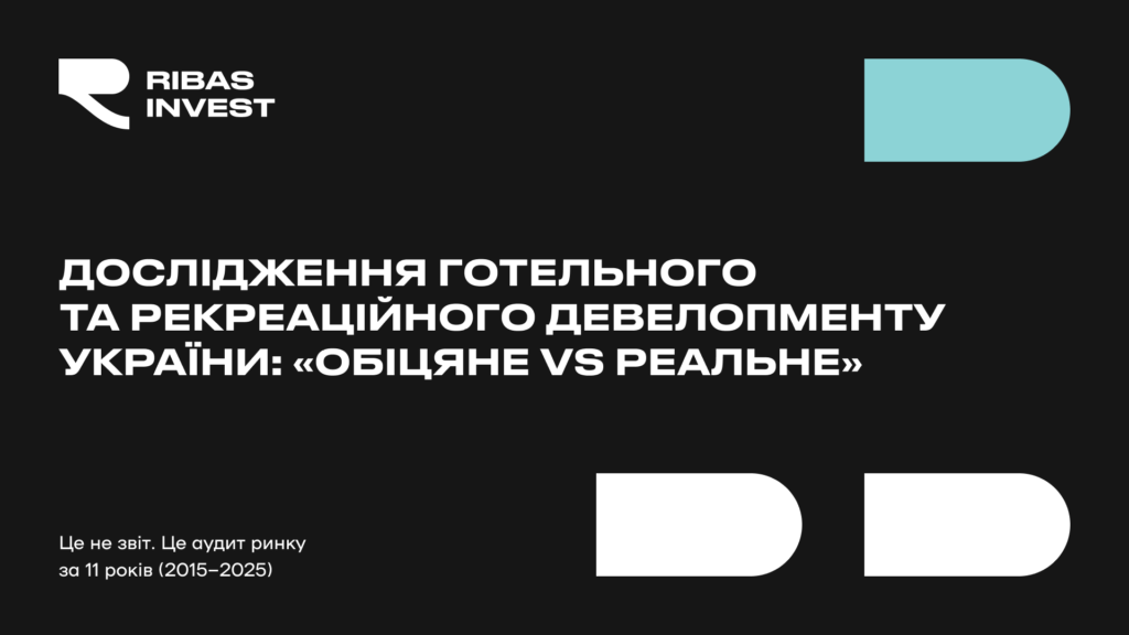 Одеса, 2026 – Компанія Ribas Invest, що входить до групи Ribas Hotels Group, представила комплексний аудит готельного та рекреаційного девелопменту України «Обіцяне vs Реальне» за 2015-2025 роки. Дослідження охоплює динаміку дозволів на будівництво, реальні терміни реалізації проєктів, географічне переміщення капіталу та порівняння маркетингових обіцянок із даними ринку.