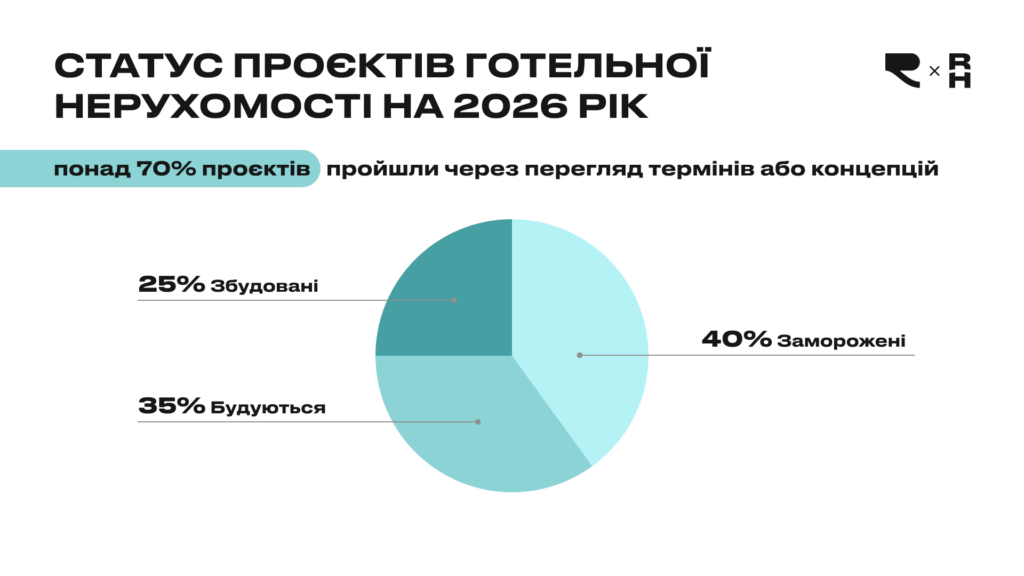 40% готельних проєктів, анонсованих у 2021-2022 рр, залишаються замороженими: Ribas Hotels Group оприлюднила аудит ринку