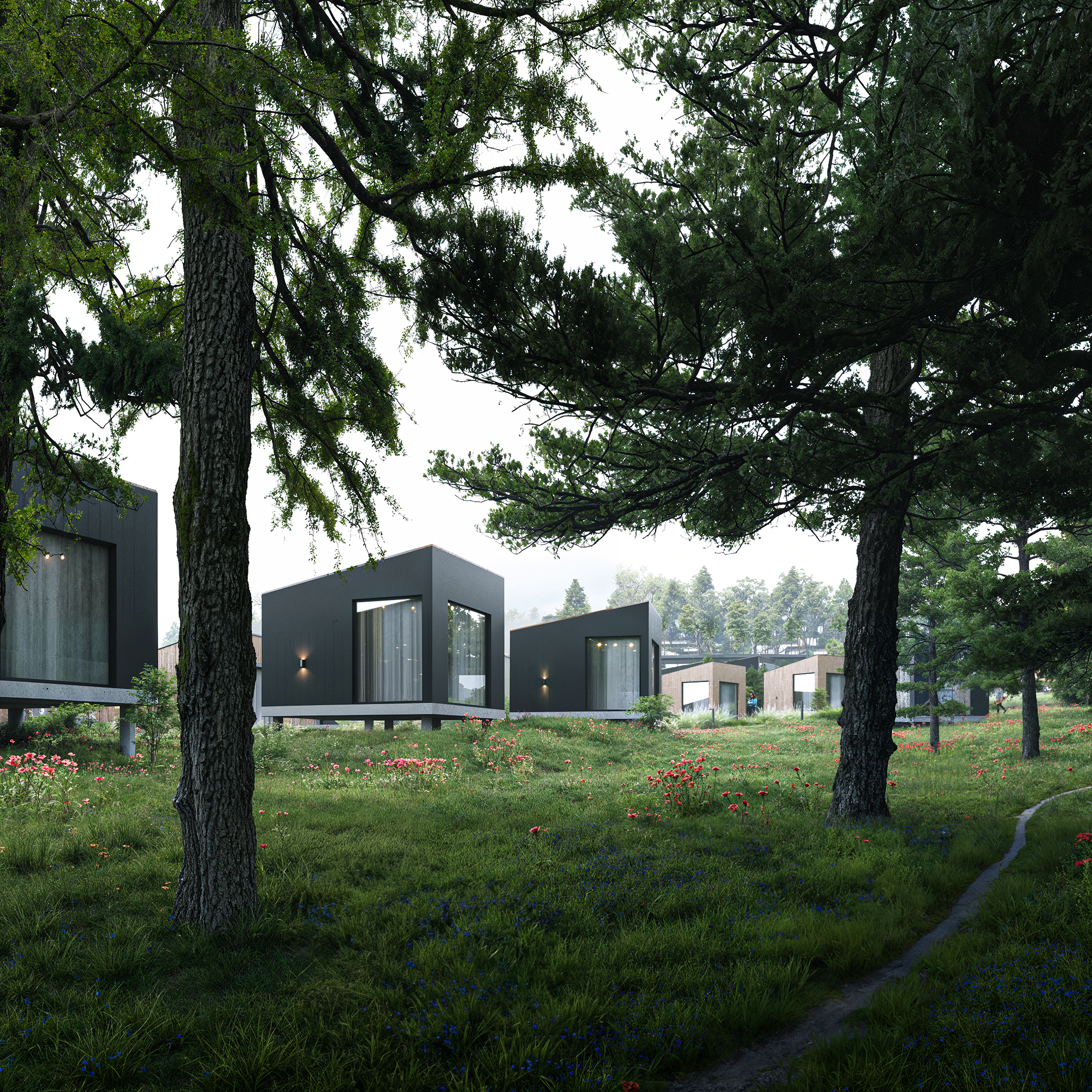 Функціональні 1‑поверхові котеджі та дуплекси на 1 – 2 спальні, а також унікальні 3‑поверхові будинки-башти.